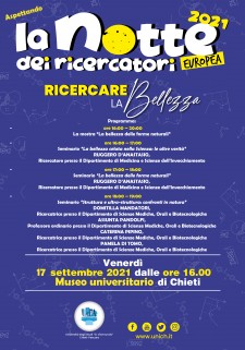 Il Museo universitario partecipa attivamente alla manifestazione già a partire da venerdì 17 settembre 2021 con l’iniziativa “Aspettando la Notte europea dei Ricercatori” presso l’auditorium del Museo in Piazza Trento e Trieste a Chieti.