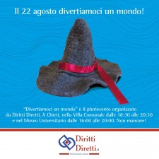 DirittiDiretti.it, la onlus fondata da Simona Petaccia, invita grandi e piccini al plurievento di domenica 22 agosto che avrà luogo dalle 18:30 alle 20:30 in vari punti della Villa Comunale e nel Museo Universitario di Chieti dalle 16:00 alle 20:00.