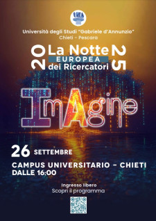 "ImAgine" è il tema dell'edizione 2025 de La Notte europea dei Ricercatori, che si terrà venerdì 26 settembre 2025, dalle ore 16.00, presso il Campus universitario di Chieti.