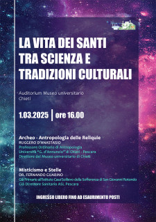 Sabato 1° marzo 2025, alle ore 16:00, presso l’auditorium del Museo universitario di Chieti, si terrà la conferenza dal titolo “La vita dei Santi tra scienza e tradizioni culturali”.